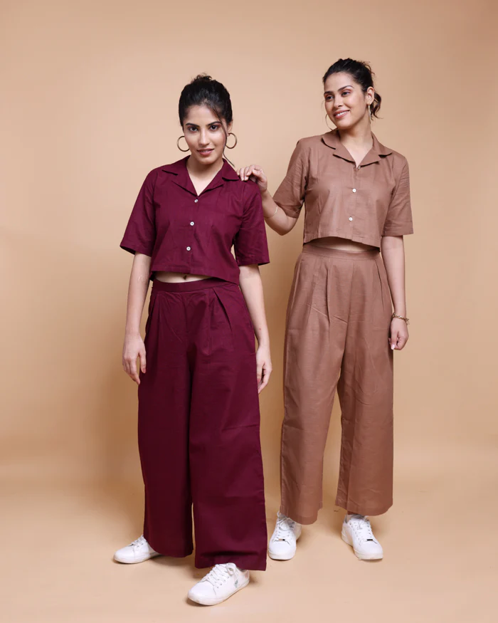Wine linen handloom cotton Co-ord Set