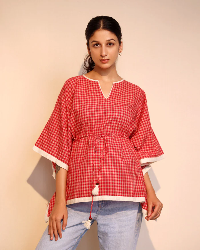 Red Checks cotton Kaftan