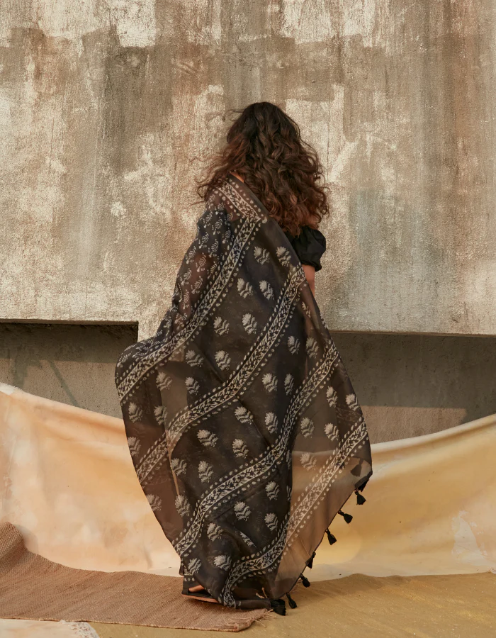 Black kashish dabu print organza saree