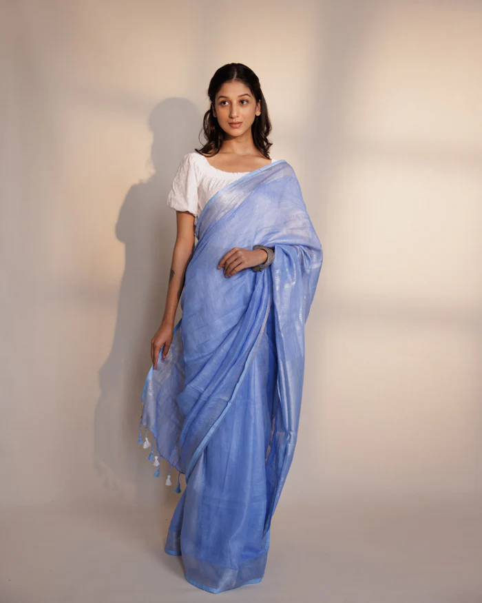 Plain Sky Blue Linen Blouse pc Length (80 cms)